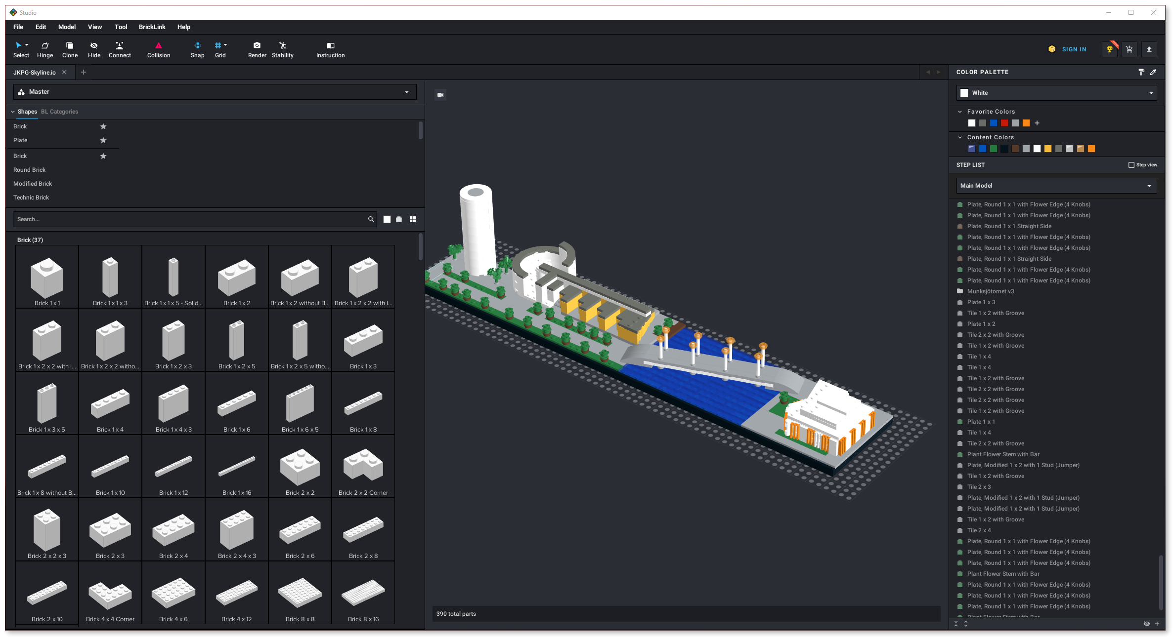 Stud.io är ett fantastiskt litet CAD-liknande program specifikt för LEGO. Det går att enkelt bygga modeller med alla tillgängliga och otillgängliga bitar. Det går även att få en prisuppskattning för en viss bit för den som vill vara lite ekonomisk och välja en annan liknande bit.